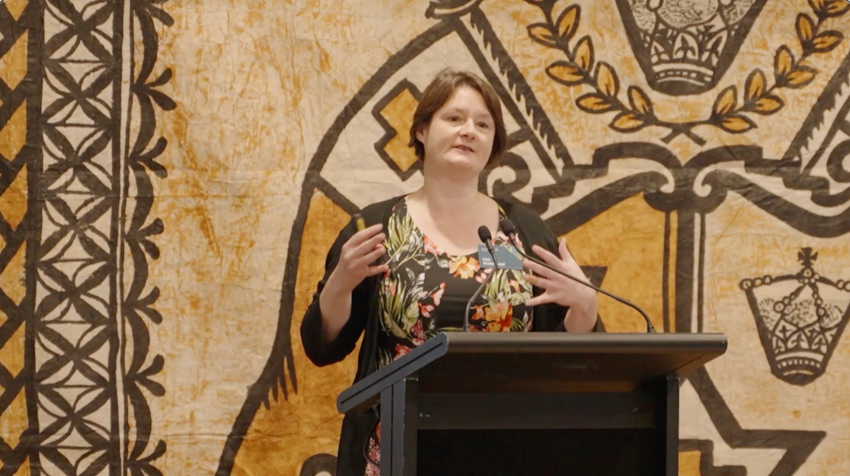 [Image Content] Dr Lisa Underwood speaking at the Mo’ui Lelei Conference. Click link below to watch video.