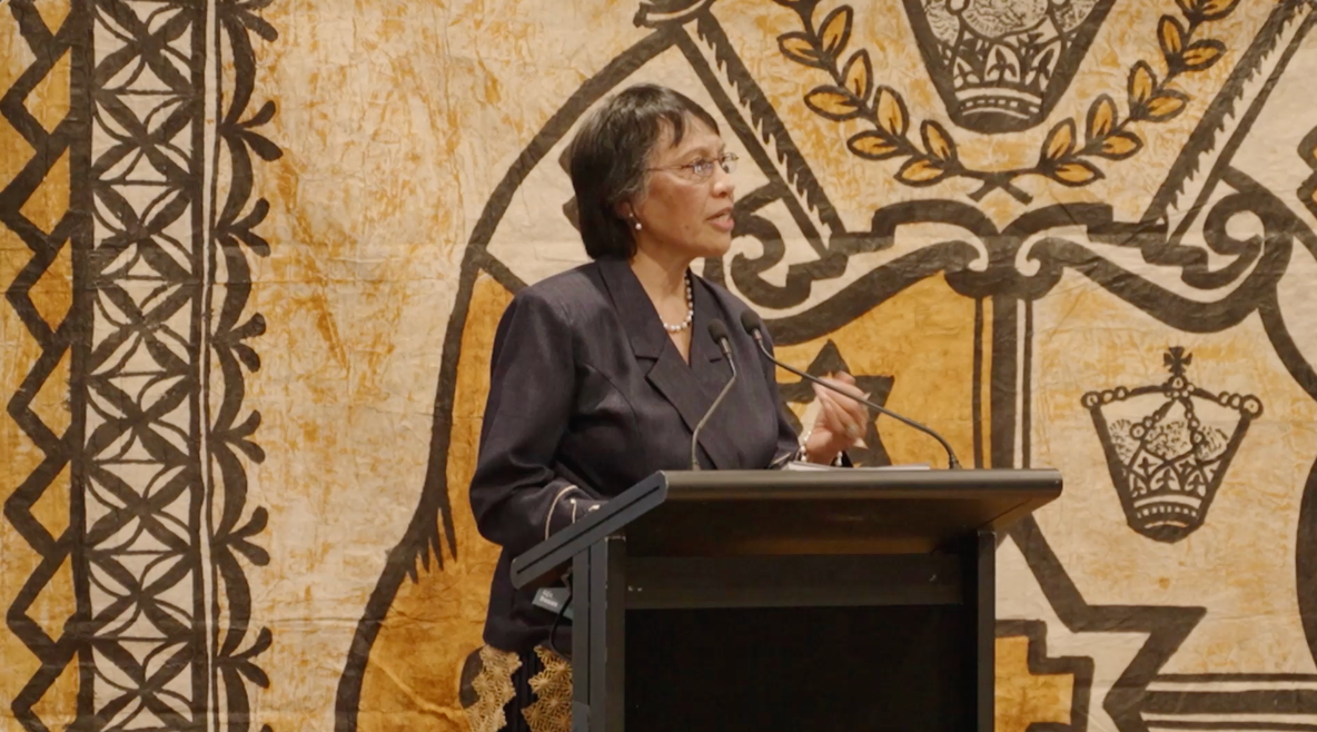 [Image Content] Dr Ofa Dewes speech at Mo’ui Lelei Conference. Click link below to watch video.